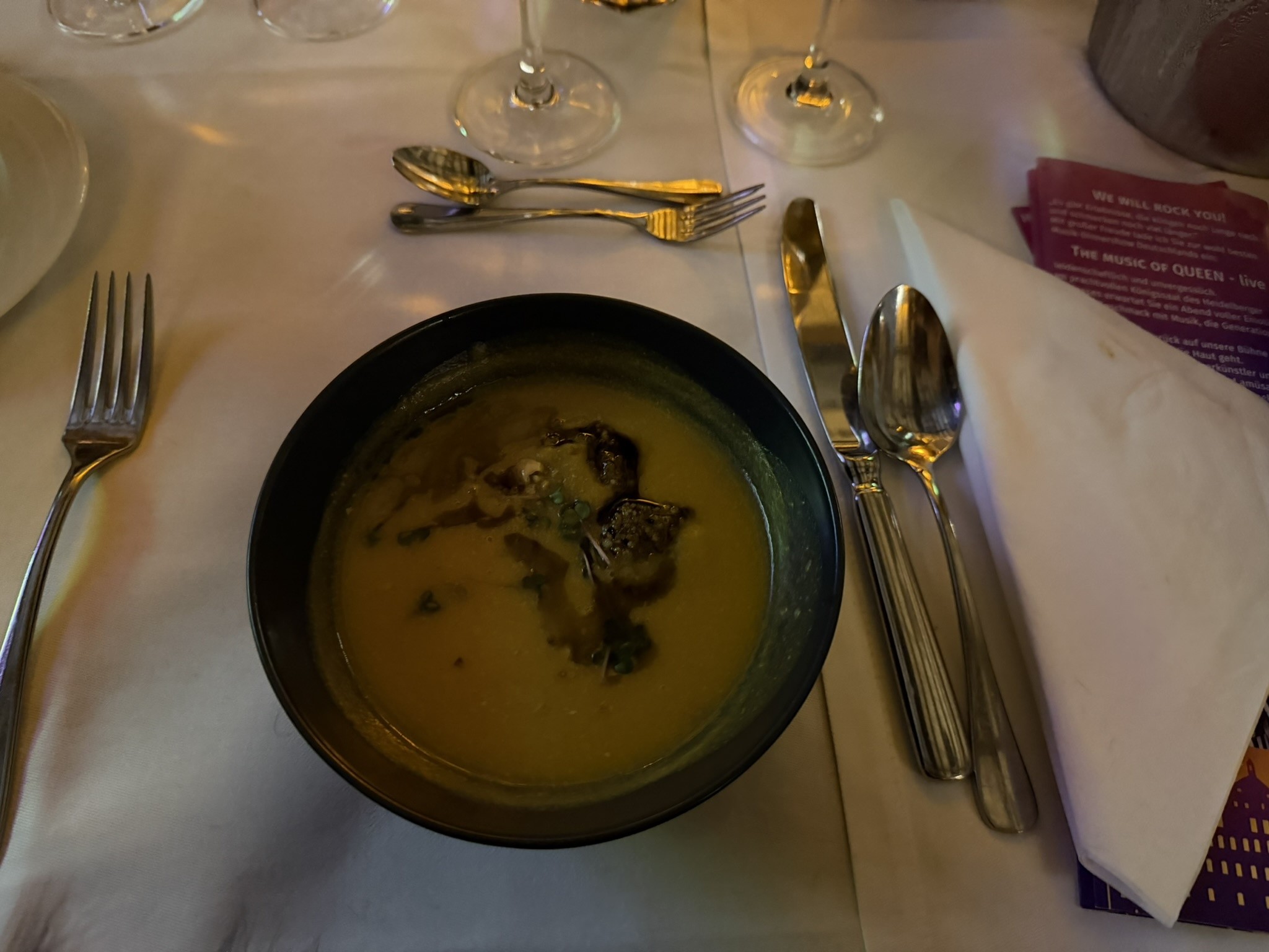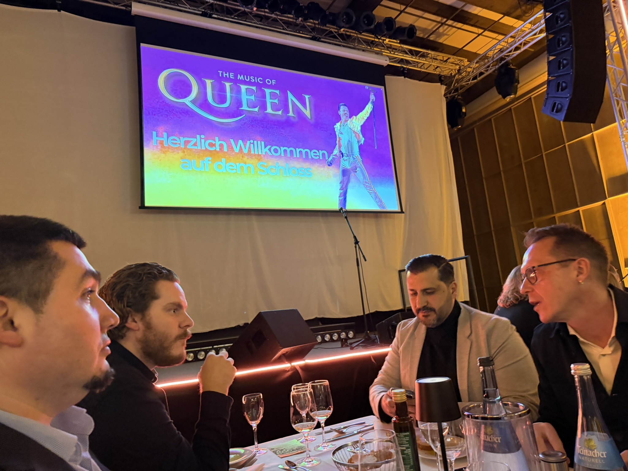 Dieses Mal dürfen wir die Band „The Music of Queen“ hören, Welthits interpretiert und gespielt von wirklichen Ausnahmekünstlern, die uns sehr begeistert haben! Neben dem köstlichen 4-Gänge Menü vom Spitzenkoch Martin Scharff wurden wir mit witzigen Anekdoten und einigen eher unbekannten Geschichten zu Freddy Mercury perfekt verwöhnt und unterhalten.
